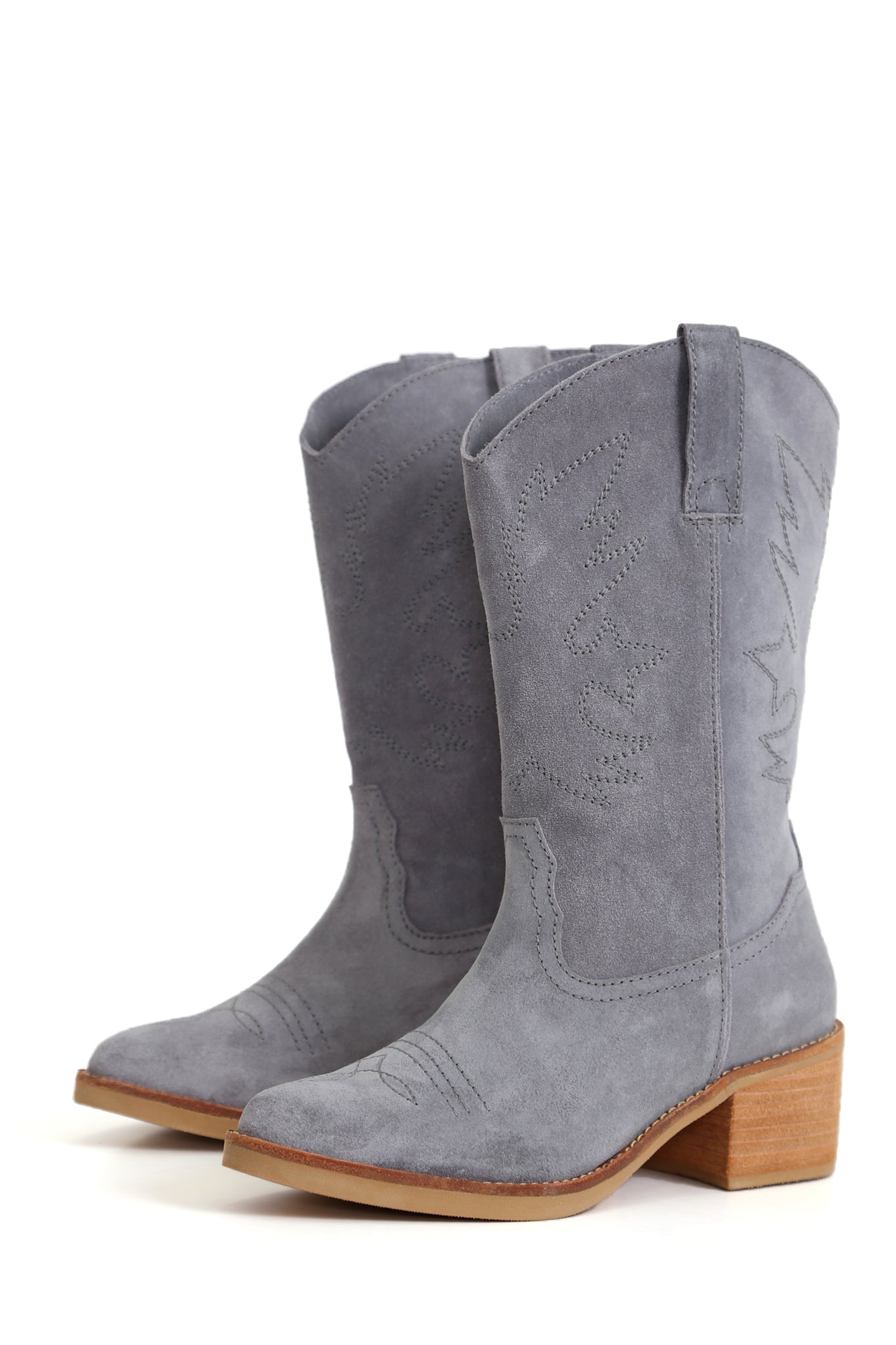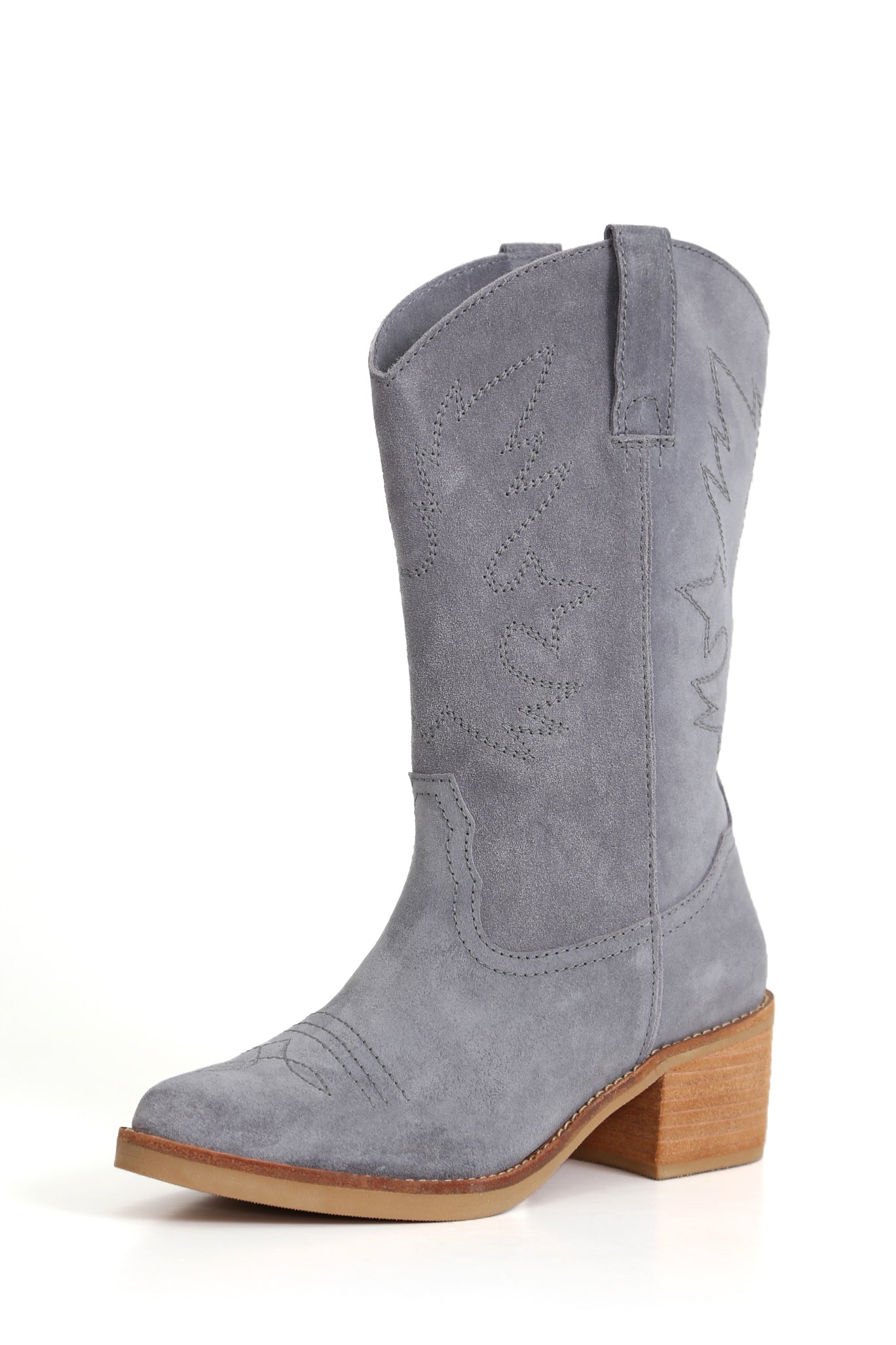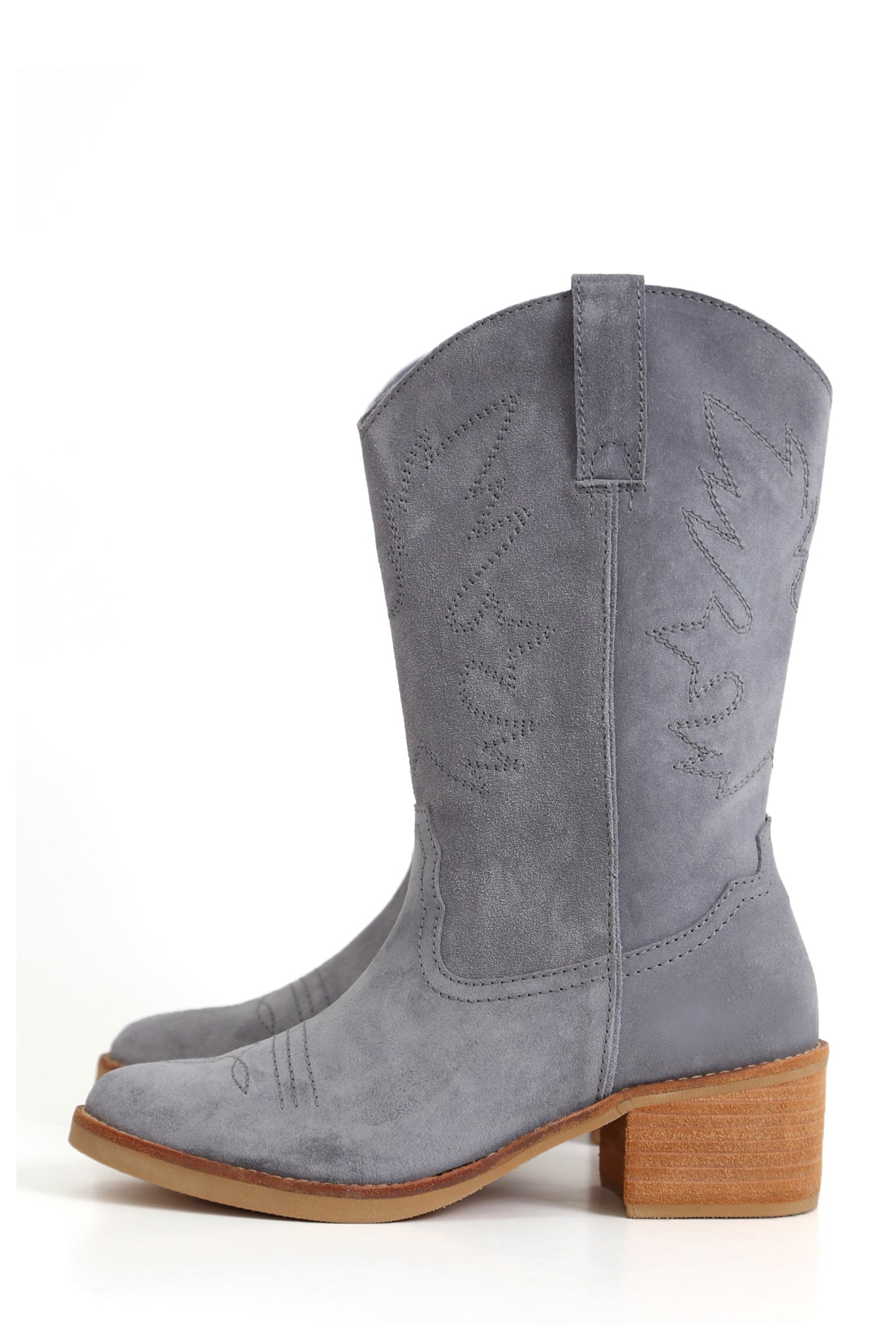 Bota vaquera artesanal Nicolasa Nacho en cuero Renobuk Perla. Diseño sin cierre que se adapta naturalmente al pie, con taco de 5 cm que proporciona altura y estabilidad. Cada par combina técnicas tradicionales con materiales certificados, creando un calzado duradero y versátil para quienes valoran la autenticidad y la sofisticación en su guardarropa.