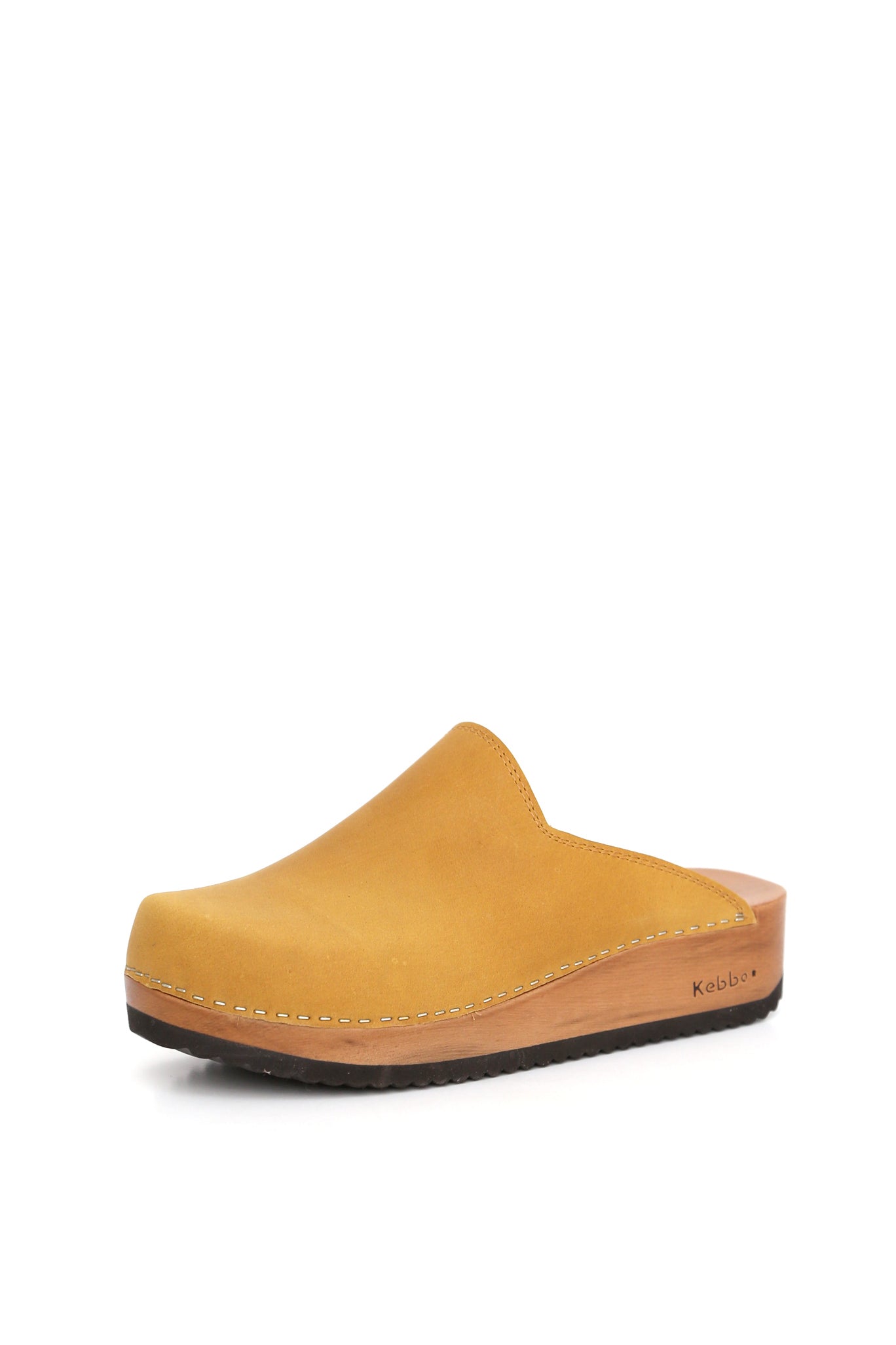 Color amarillo, capellada cuero 2.2mm al corte sin forro, planta anatómica Kebba de madera nativa, altura 5cms.