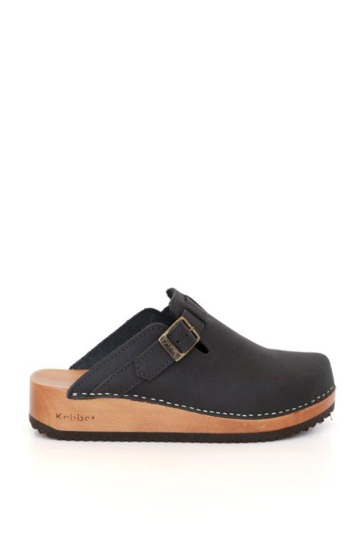 Color NEGRO, capellada cuero 2.2mm al corte sin forro, planta anatómica Kebba de madera nativa. altura 5 cms.