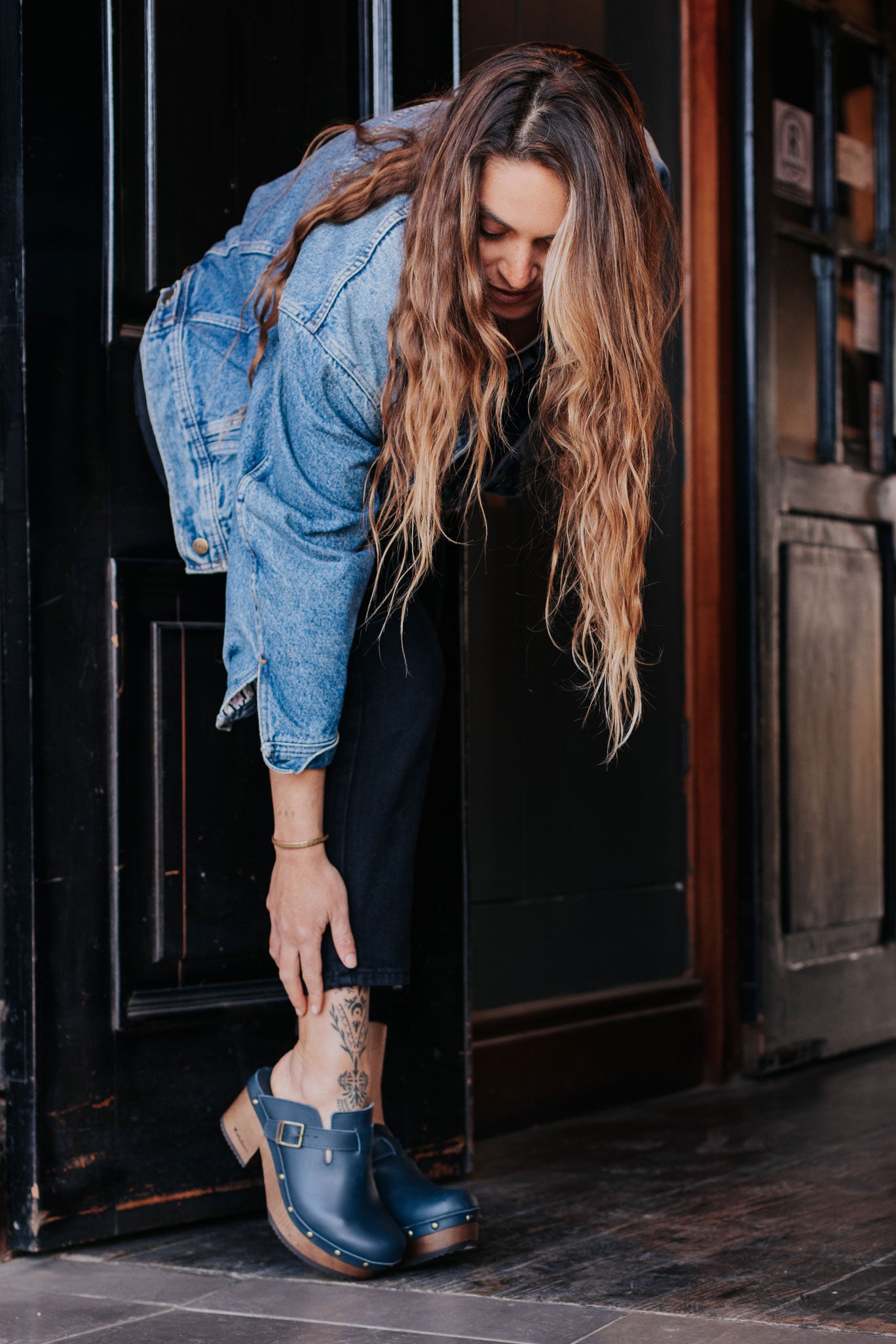 La Bua Benjamina Náutico Azul es un zueco artesanal hecho en cuero náutico azul, liso y fácil de limpiar. Su planta BUA, fabricada en madera nativa de tepa, alcanza 8 cm de altura anatómica y cuenta con regulador de empeine para mayor comodidad y ajuste. Un diseño Kebba pensado para estilo y practicidad.