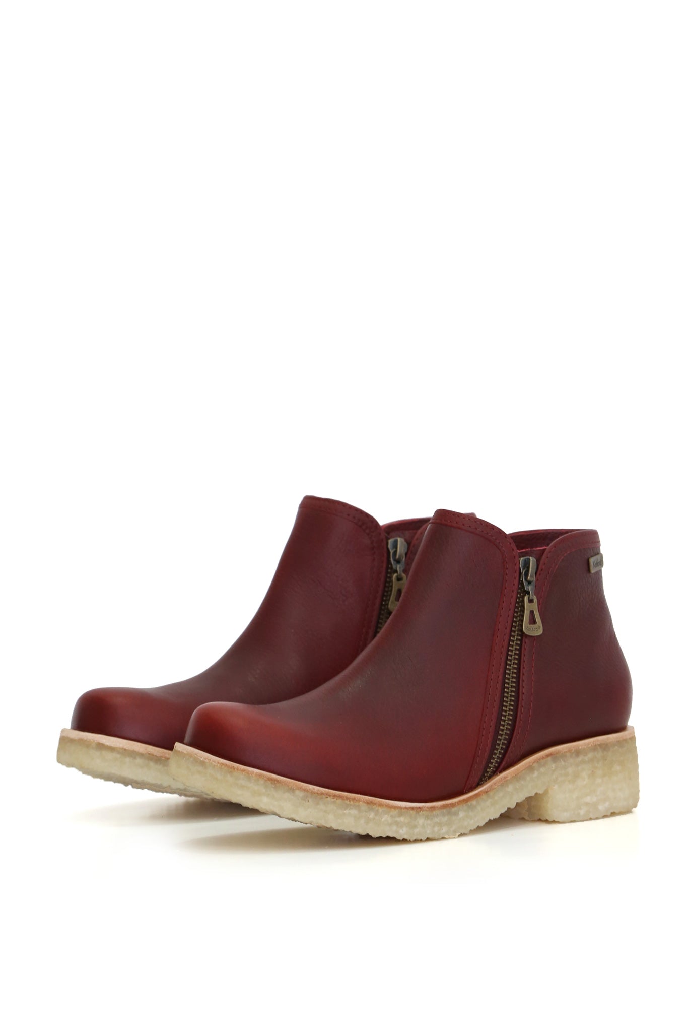 Botín de cuero vacuno, color rojo italiano, forro y plantilla de cuero.