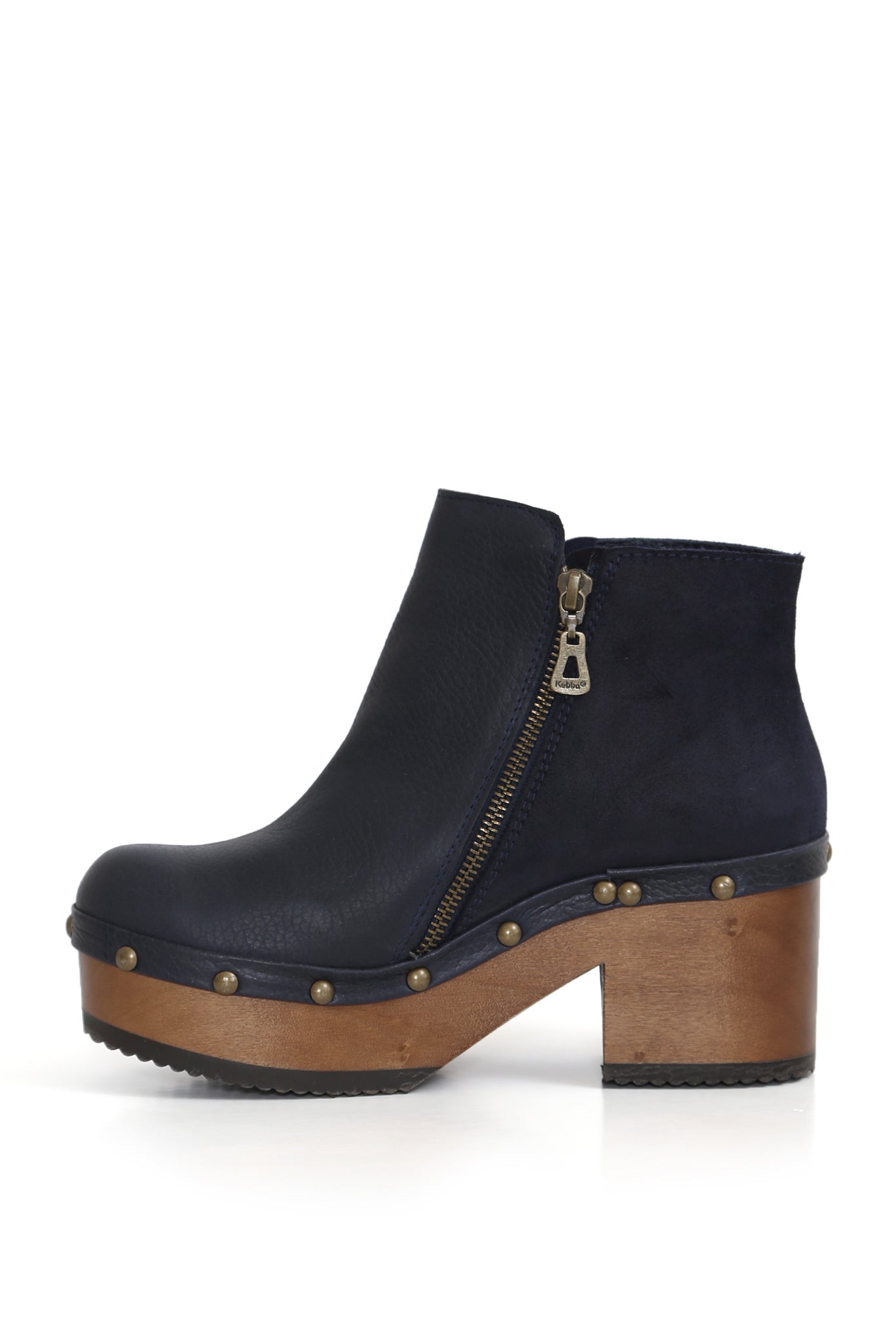Botín de cuero azul oscuro con acabado premium. Diseñado con cierre metálico en costado interno para ajuste seguro y elegante. Planta de madera BUA de 7,5 cm con soporte anatómico que combina confort y estructura. Cuero Floater y Geolux garantizan durabilidad y flexibilidad. Pieza versátil que transita entre lo casual y lo refinado, ideal para quien valora la artesanía en cada detalle.