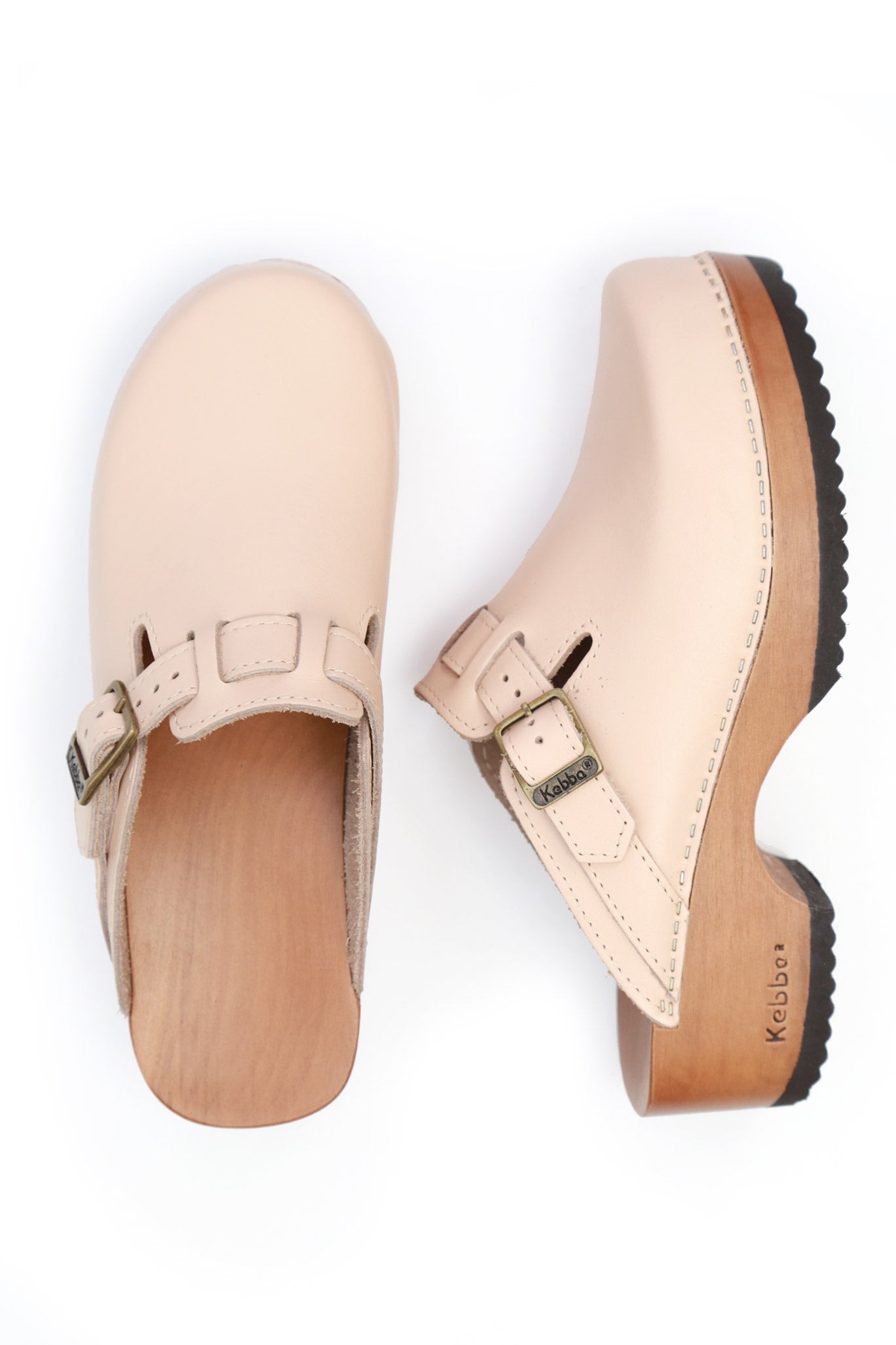 Color Damasco, capellada cuero 2.2mm al corte sin forro con correa ajustable, planta anatómica Cloc de madera nativa, altura 5 cms.