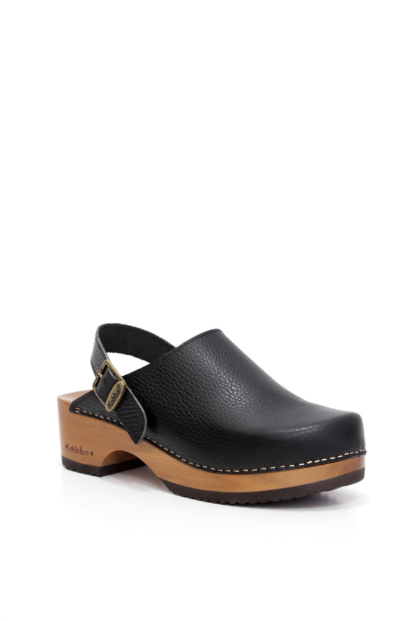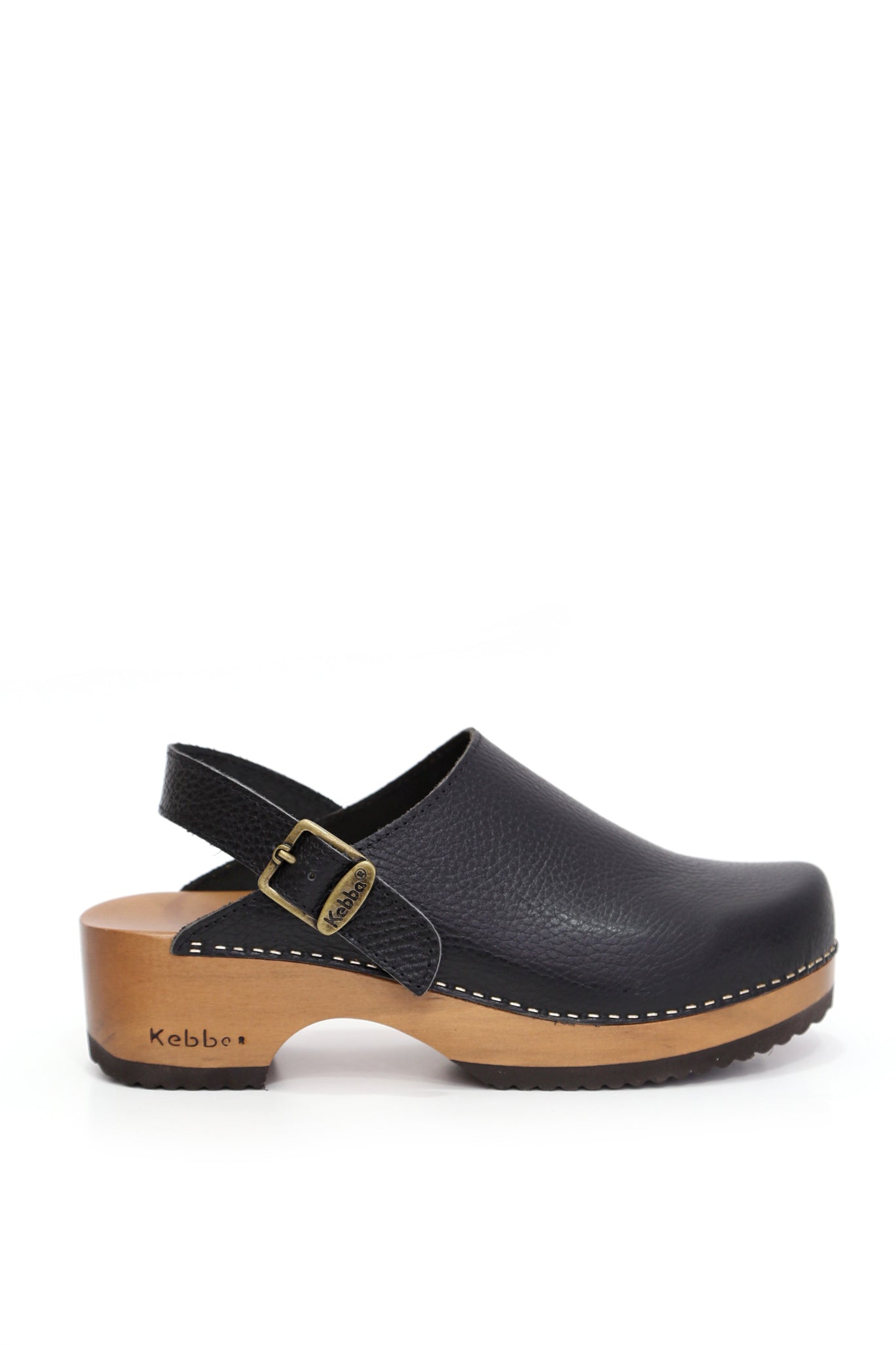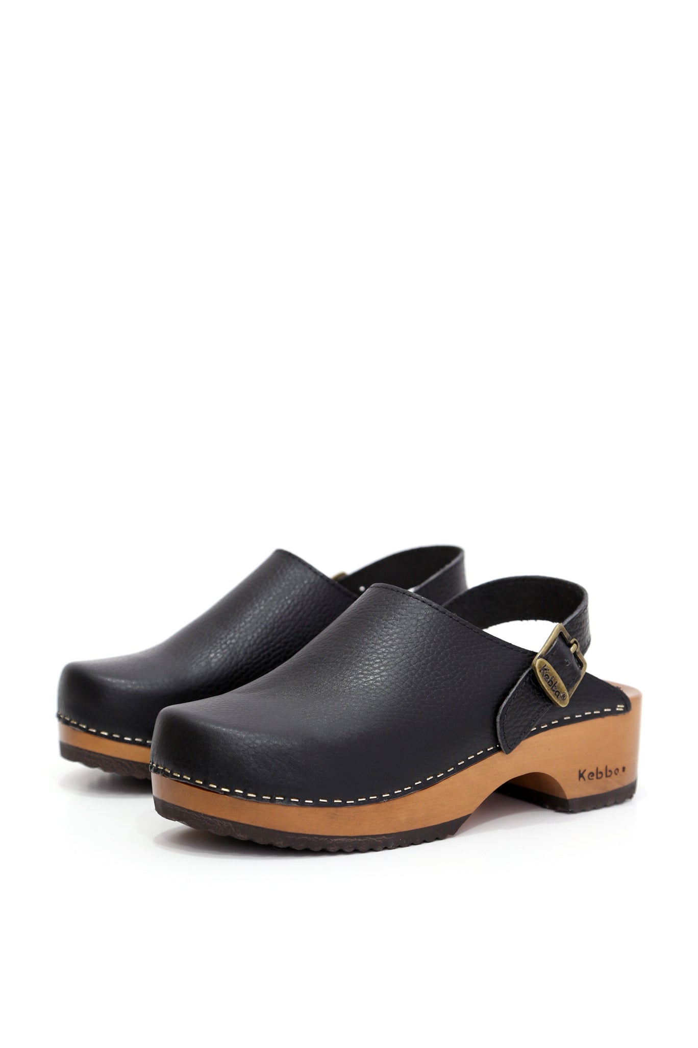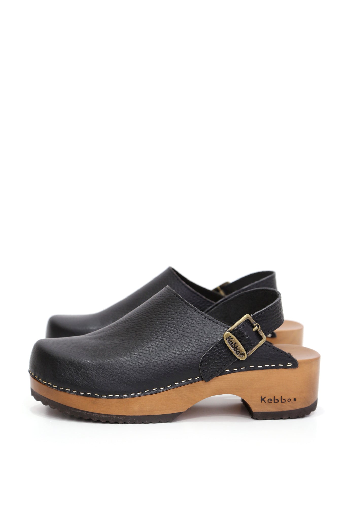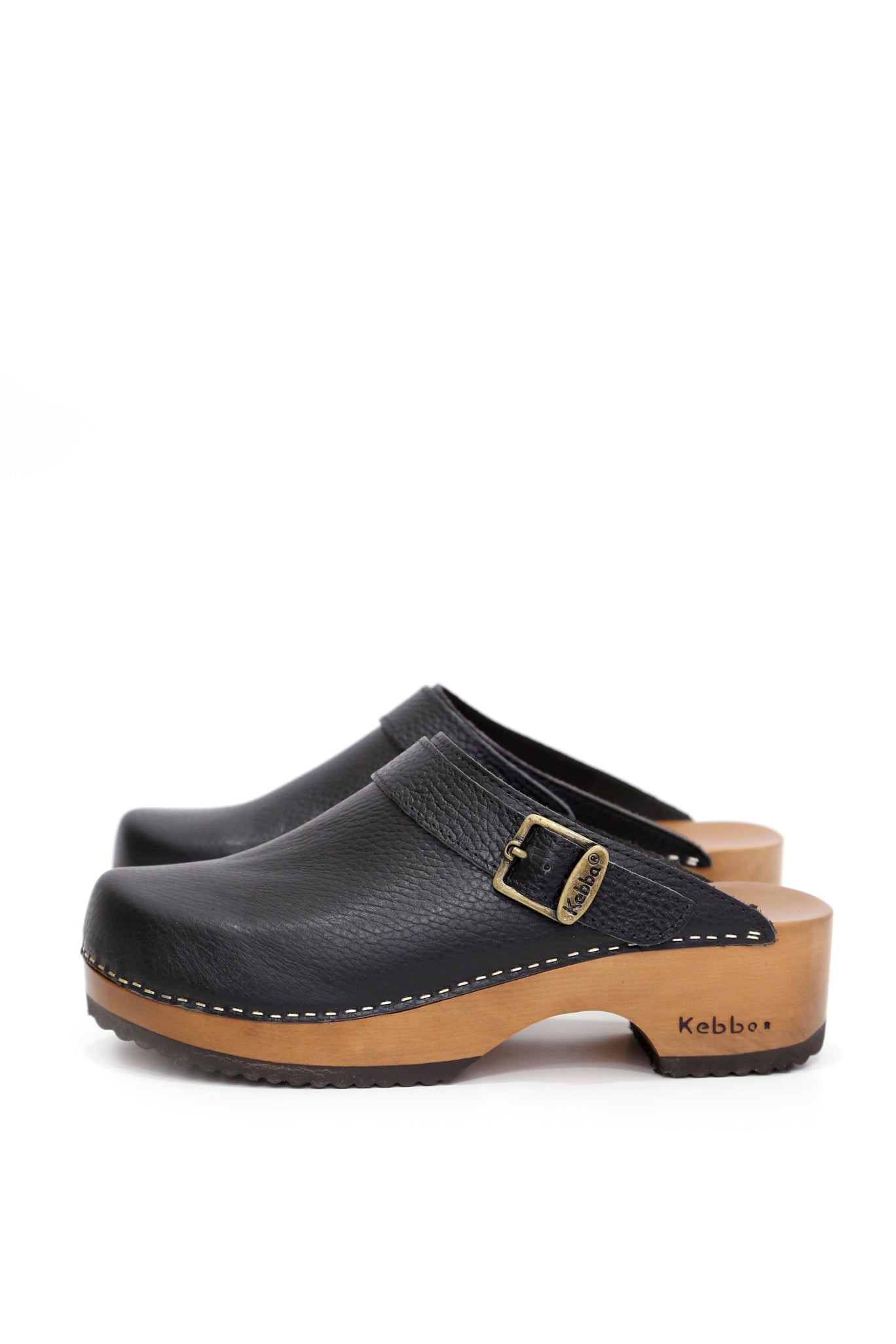 Es lustrable y también se puede limpiar con crema.Zueco cuero vacuno texturado negro, capellada cuero 2.2mm al corte sin forro con correa ajustable, planta anatómica Cloc de madera nativa TEPA, altura 5 cms.